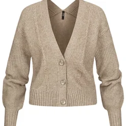 ONLY Damen Crop V-Neck Cardigan Mit Strukturstoff Pumice Stone Beige