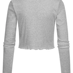 Noisy May Damen NOOS Crop Cardigan Mit Knopfleiste Und Frilldetails Hellgrau Melange